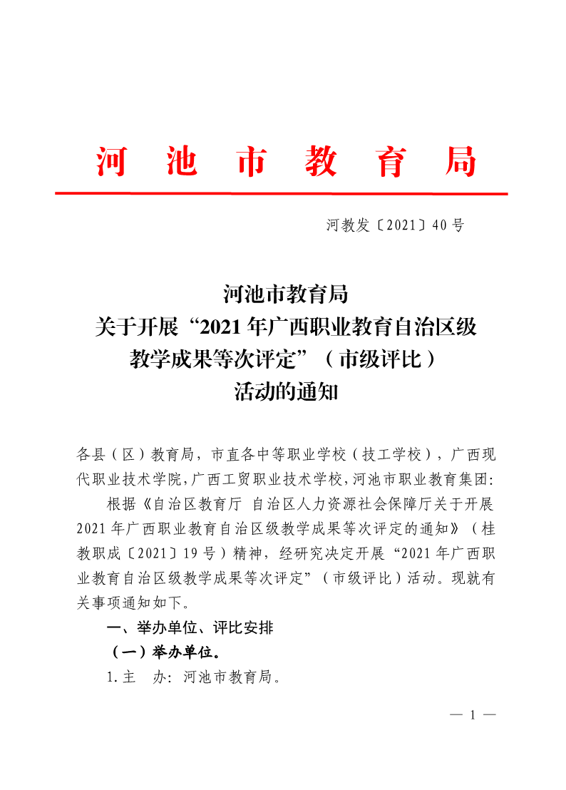 河池市教育局关于开展“2021年广西职业教育自治区级教学成果等次评定”(市级评比)活动的通知 来源:文/集团办公室 发布时间:2021-05-28 15:45:47 浏览次数: 次 【字体:小 大】 附件8 2021年广西职业教育自治区级教学成果等次评定(市级评比)推荐单位联系人信息表 终审:gxxdzhc001 【打印正文】 相关信息
