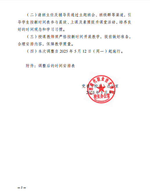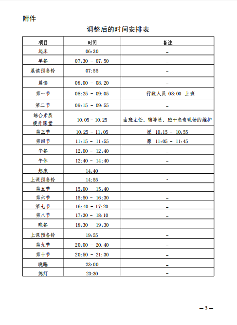 关于调整上课时间安排的通知