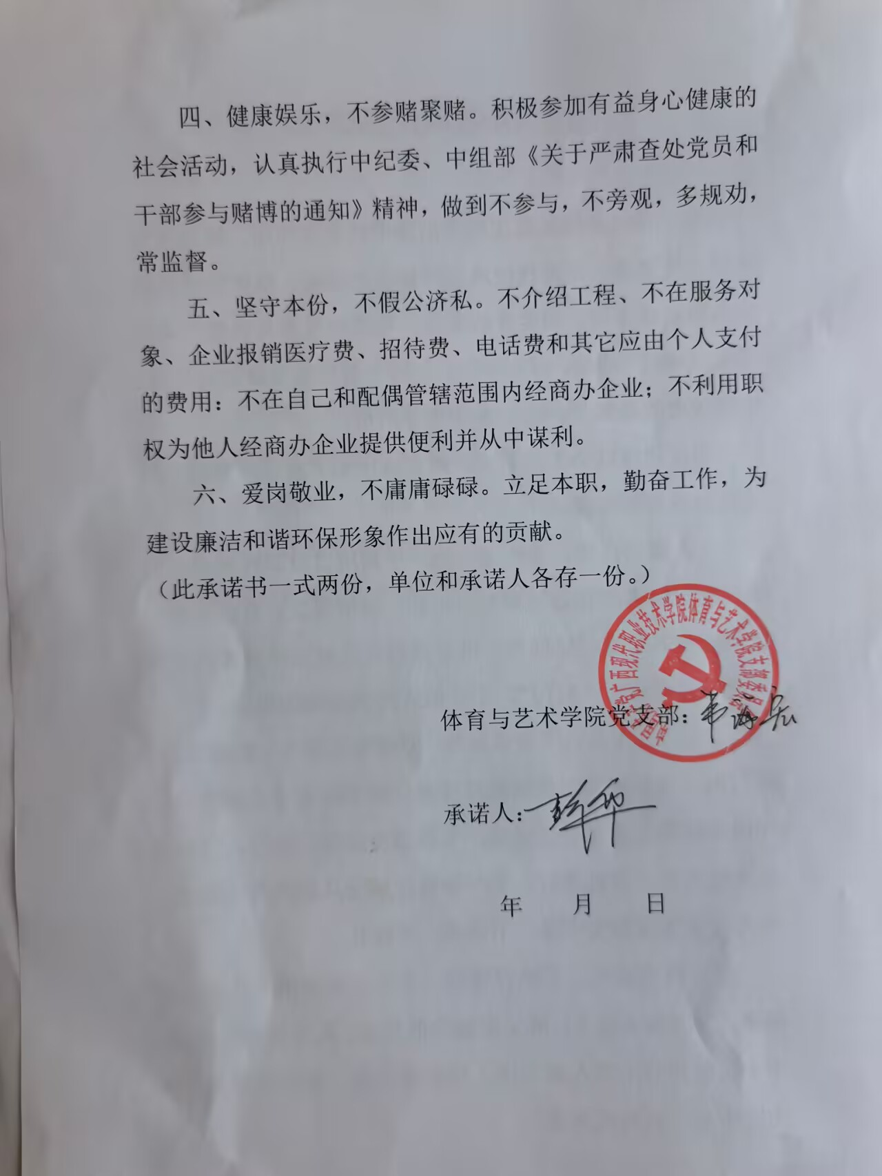 家和万事兴,家齐国安宁。党的十八大以来,习近平总书记始终心系百姓冷暖、情牵万家灯火,亲自谋划、亲自部署、亲自推动新时代家庭家教家风建设。党的二十大首次将“加强家庭家教家风建设”写入党代会报告,党的二十届三中全会明确提出“健全发挥家庭家教家风建设在基层治理中作用的机制”改革任务,标志着家庭家教家风建设深度融入国家治理体系,体现了中国特色的制度创新。“家是最小国,国是千万家”,家庭作为社会的基本细胞,是拒腐防变的重要防线,更是预防和抵制腐败的前沿阵地。为进一步深入学习贯彻《习近平关于注重家庭家教家风建设论述摘编》重要论述精神,立足职能、丰富内涵、创新载体,以家庭和睦、家教良好、家风端正筑牢中国式现代化根基;进一步夯实家庭廉政建设根基,充分发挥家庭在反腐倡廉中的独特作用,大力弘扬优良家风,按照校党委《关于开展2025年“清廉家风进万家”主题宣传教育活动的通知》要求,10月15日,体育与艺术学院党支部开展了“筑梦家风建设,筑牢家园防线”为主题的家庭助廉活动。