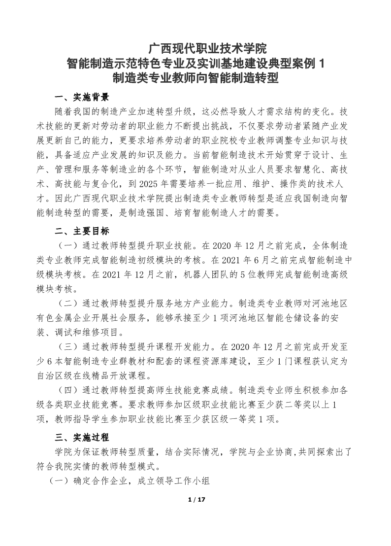 智能制造示范特色专业群及实训基地