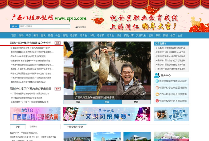 [八桂职教网]河池市职教集团专指委成立大会召开 来源: 发布时间:2018-02-09 11:39:24 浏览次数: 次 【字体:小 大】 “河池市职教集团专指委成立大会召开”新闻在八桂职教网网站首页头条截图: 【打印正文】 相关信息