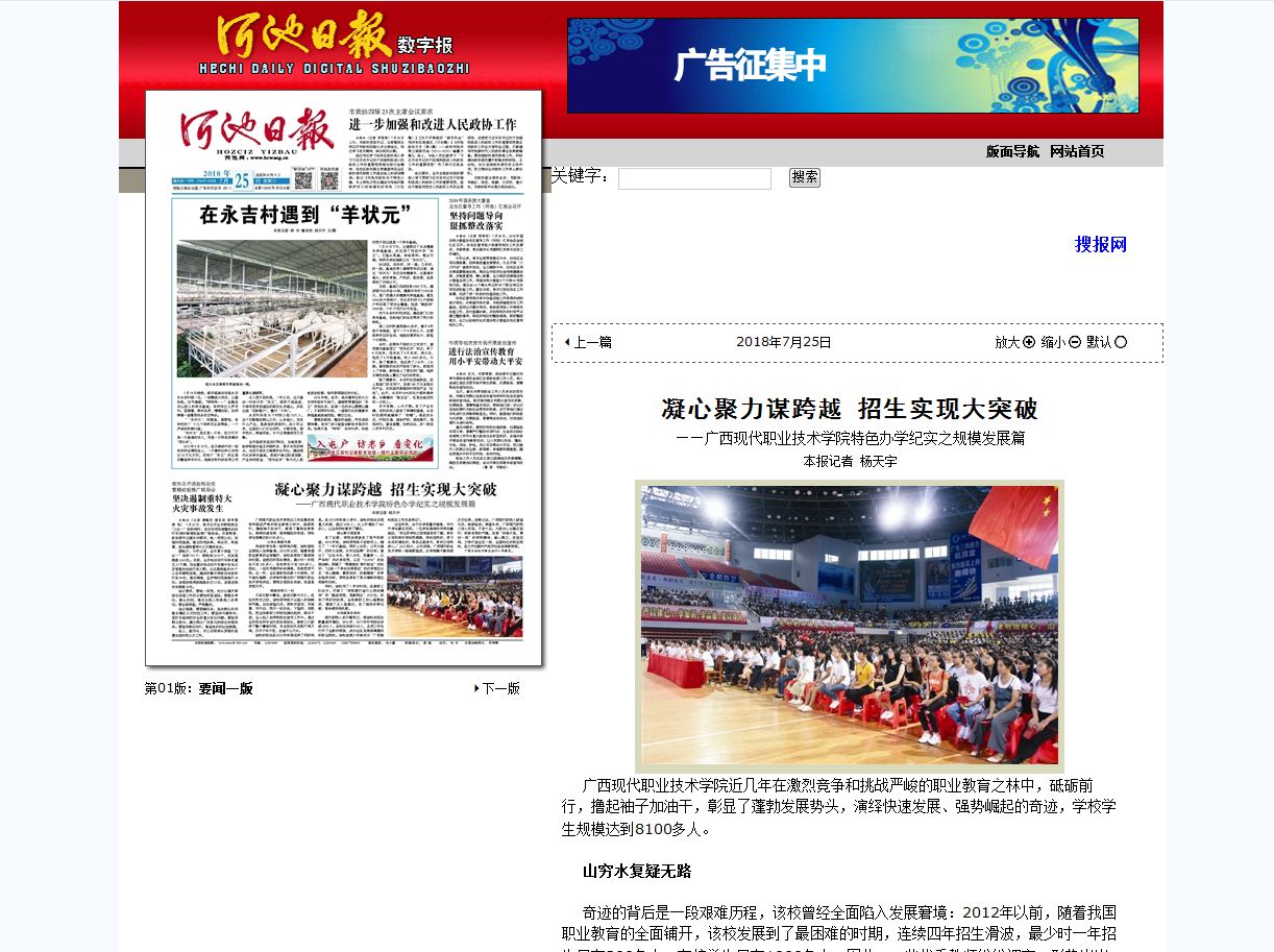 [河池日报]凝心聚力谋跨越 招生实现大突破——优米体育入口官网下载手机版特色办学纪实之规模发展篇 来源: 发布时间:2018-07-26 15:04:36 浏览次数: 次 【字体:小 大】 新闻截图: 【打印正文】 相关信息