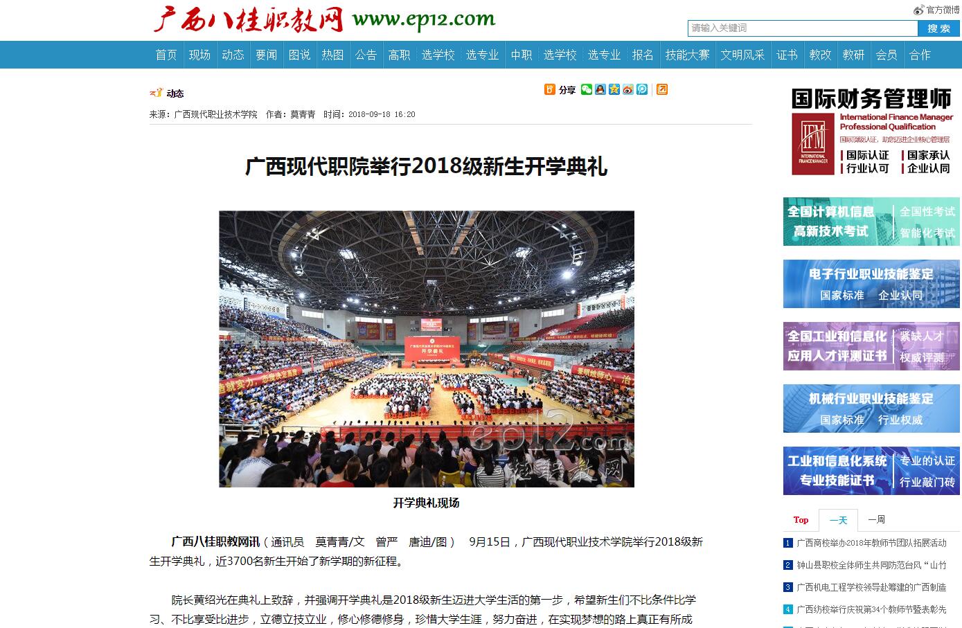 [八桂职教网]广西现代职院举行2018级新生开学典礼