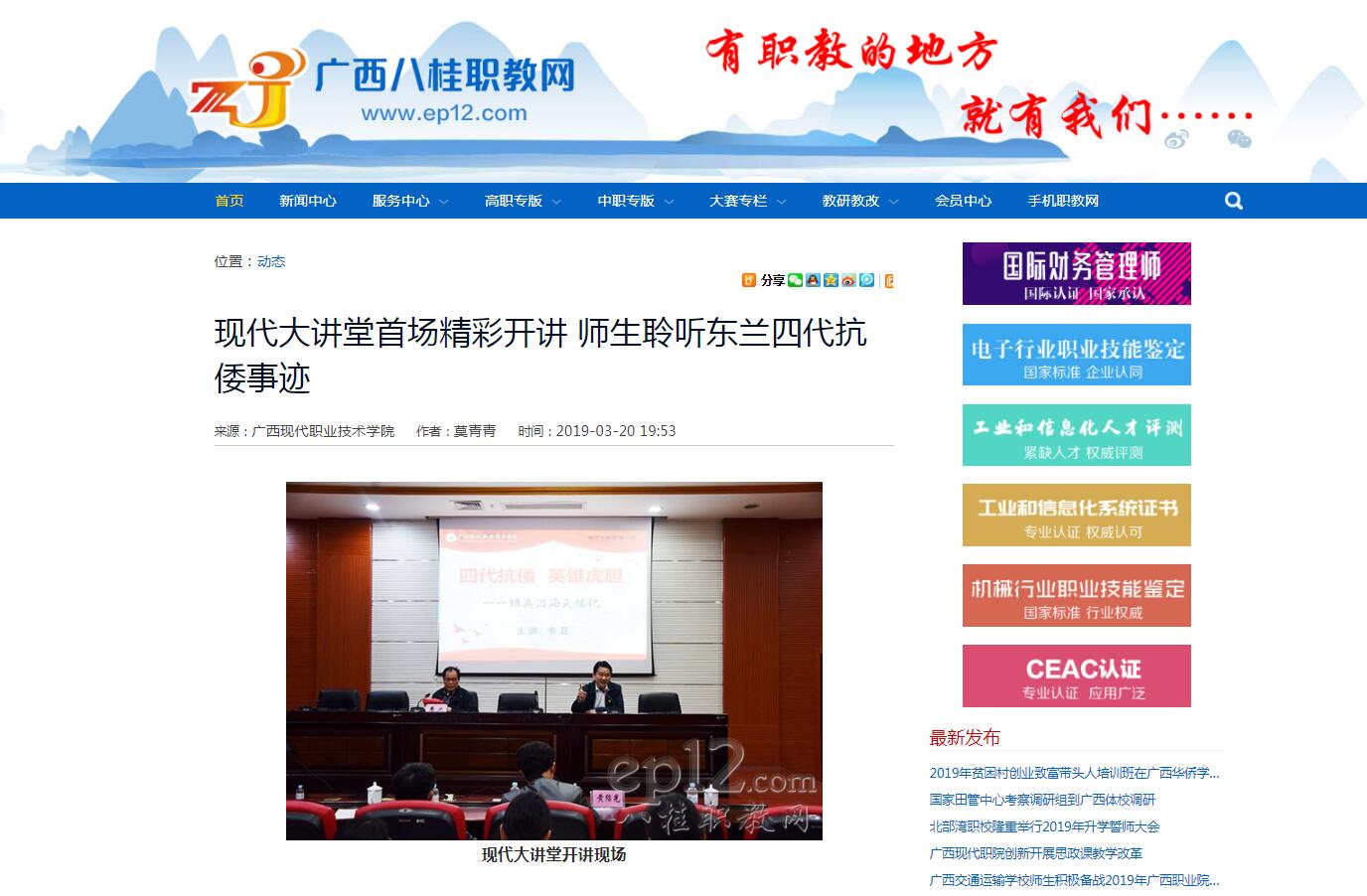[八桂职教网]现代大讲堂首场精彩开讲 师生聆听东兰四代抗倭事迹 来源: 发布时间:2019-03-21 11:24:26 浏览次数: 次 【字体:小 大】 作者: | 日期:2019-3-21 11:24:26 | 浏览数:77 | 今日浏览数:1 新闻截图: 【打印正文】 相关信息
