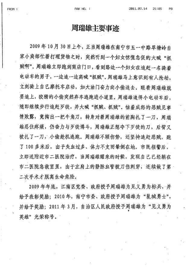 第十一届全国见义勇为英雄模范评选已进入公示、投票阶段,其中南宁市的广西见义勇为英雄周瑞雄和去年抢救飞行员河池市、来宾市的兰绍金等九人群体入围第十一届全国见义勇为英雄模范候选人。为贯彻落实《关于做好第十一届全国见义勇为模范候选人事迹宣传和投票工作的通知》(桂教文明办[2012]4号)文件精神,请各部门、单位做好宣传工作并积极组织师生参加投票。