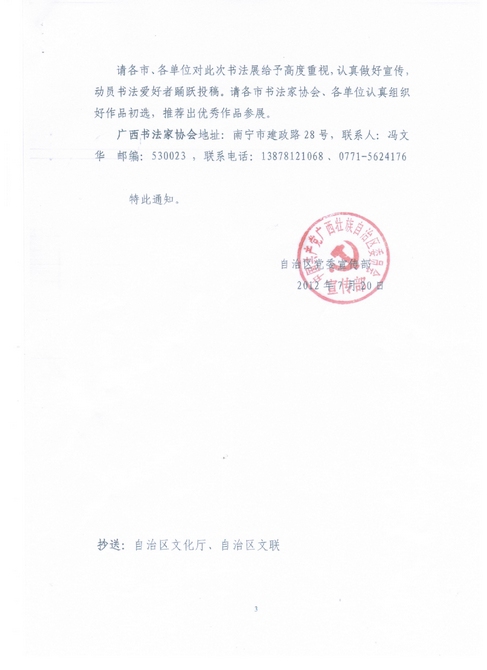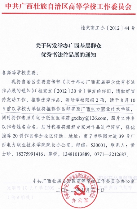 关于转发举办广西基层群众优秀书法作品展的通知