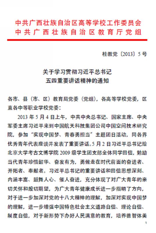 桂教党〔2013〕5号关于学习贯彻习近平总书记五四重要讲话精神的通知