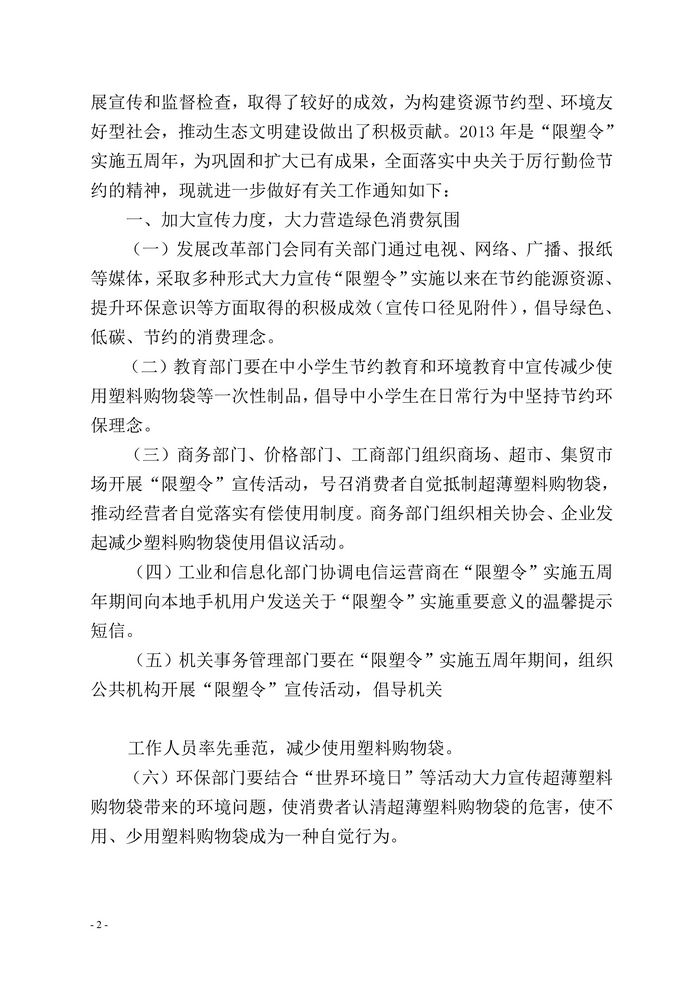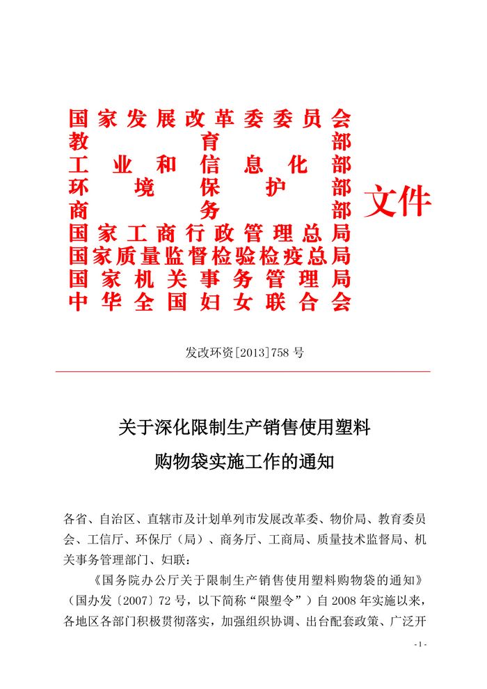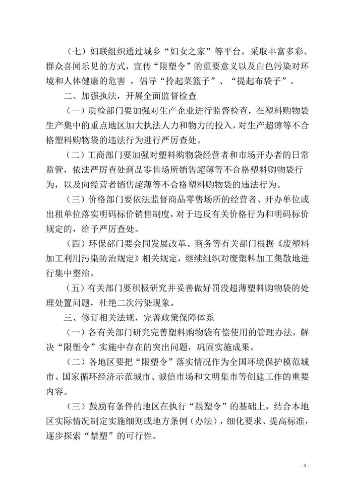 关于深化限制生产销售使用塑料购物袋实施工作的通知