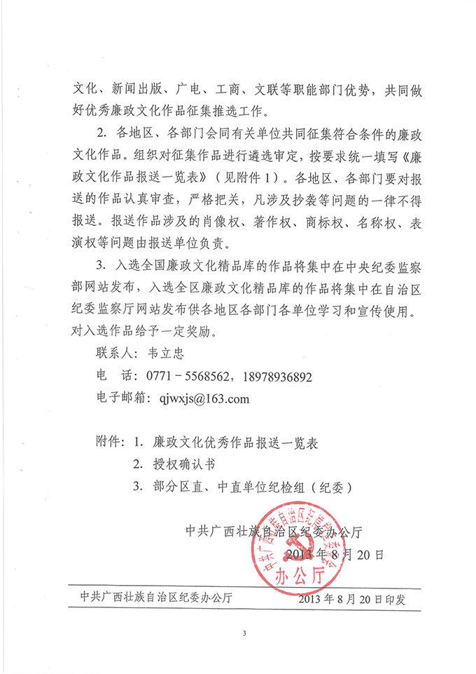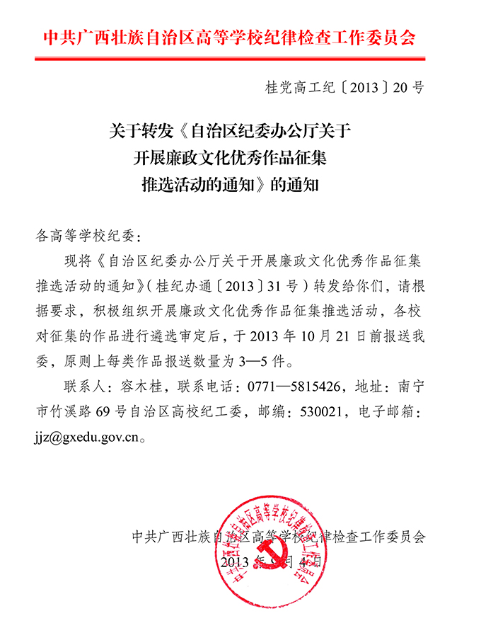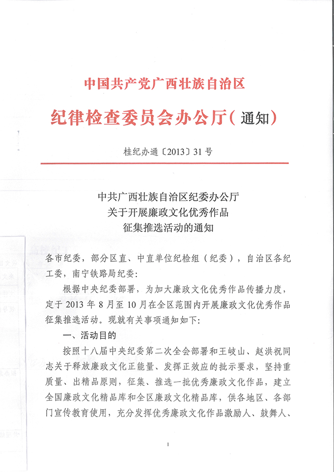 关于转发《自治区纪委办公厅关于开展廉政文化优秀作品征集推选活动的通知》的通知