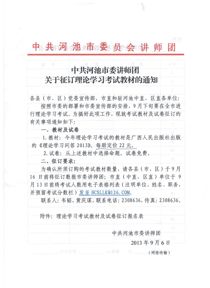 通知 来源: 发布时间:2013-09-22 08:34:31 浏览次数: 次 【字体:小 大】 通 知 院属各部门: 按照市委的部署和市委宣传部的安排,9月下旬要在全市进行理论学习考试,现要征订教材,请各部门于9月23日下午下班前收齐本部门的费用后交至院办潘杨处,由院办统一上交到市委讲师团。(注:参加考试人员为在编的教职员工) 优米体育入口官网下载手机版 2013年9月23日 【打印正文】 相关信息