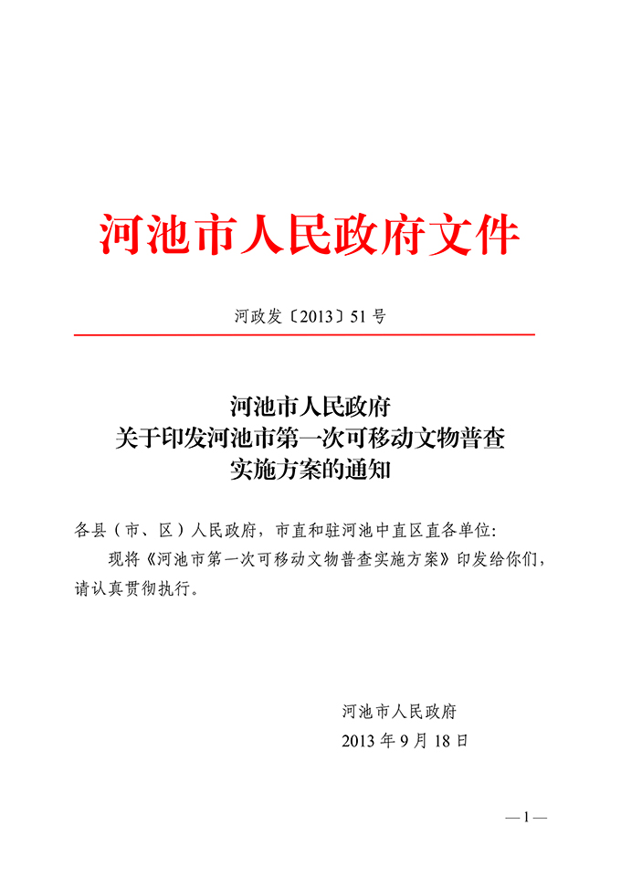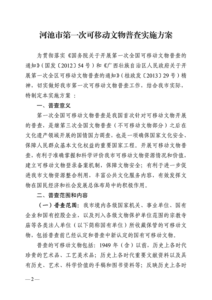 河池市人民政府关于印发河池市第一次可移动文物普查实施方案的通知