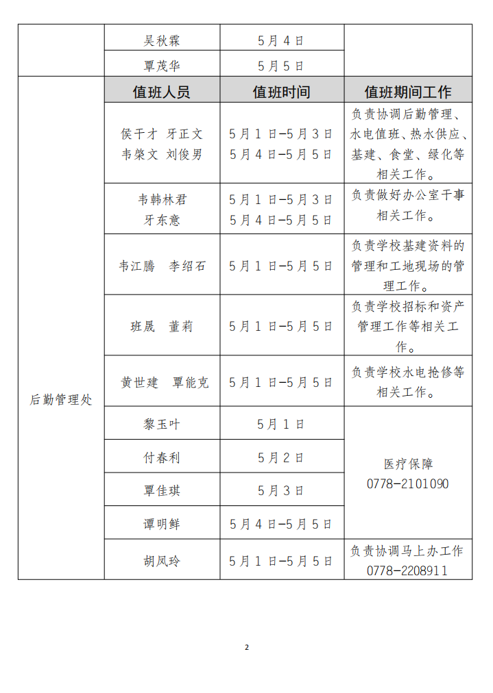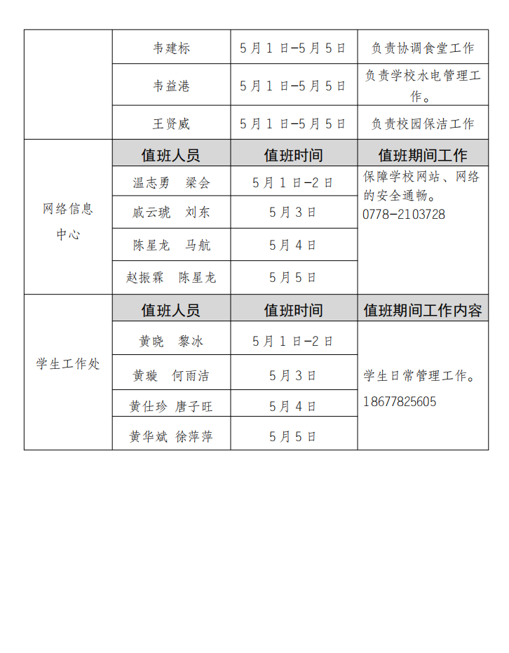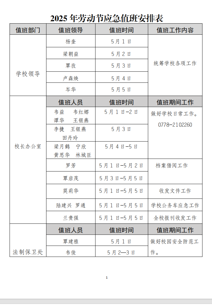 2025年“五一”劳动节应急值班安排