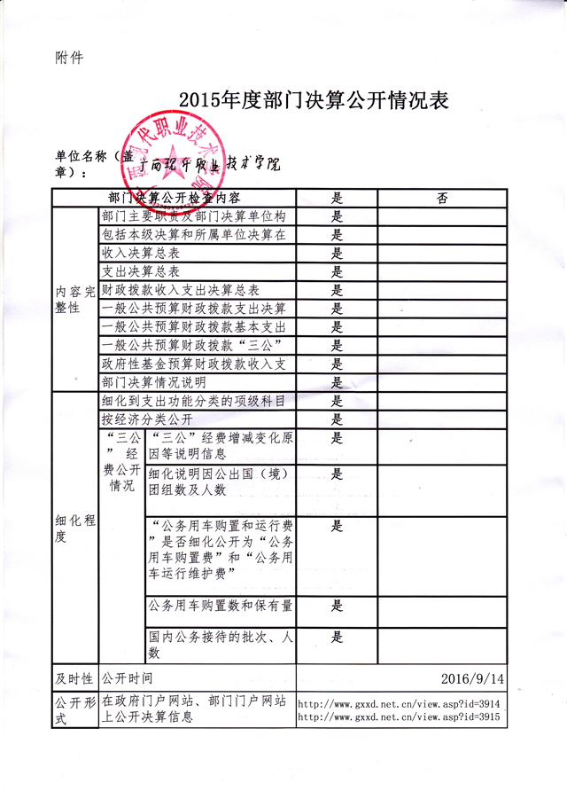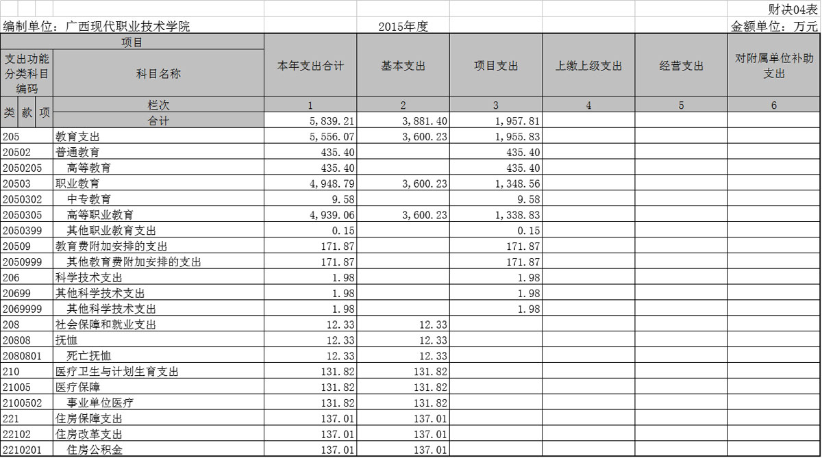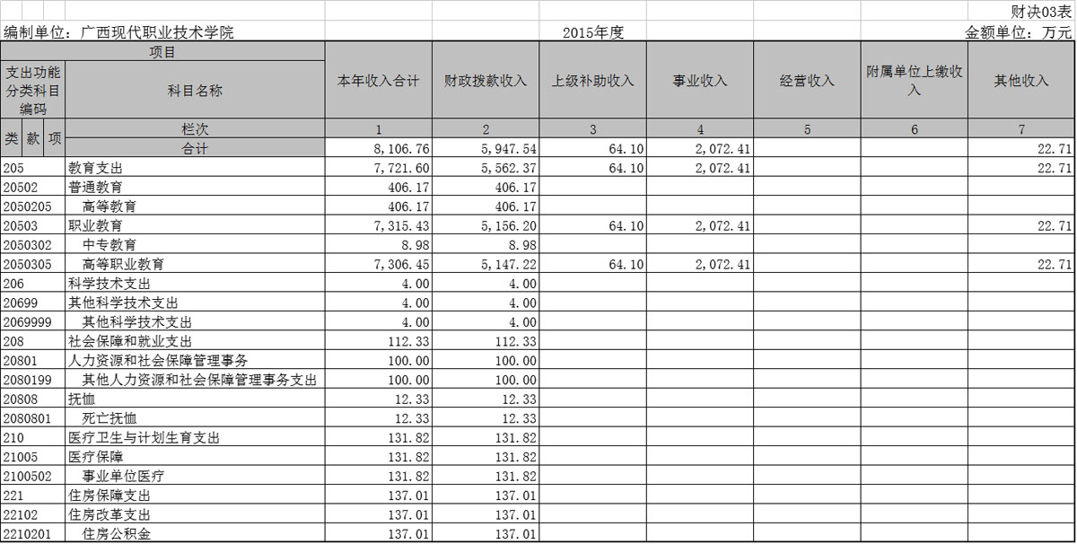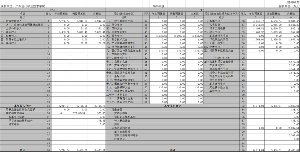 学院2015年部门决算信息公开