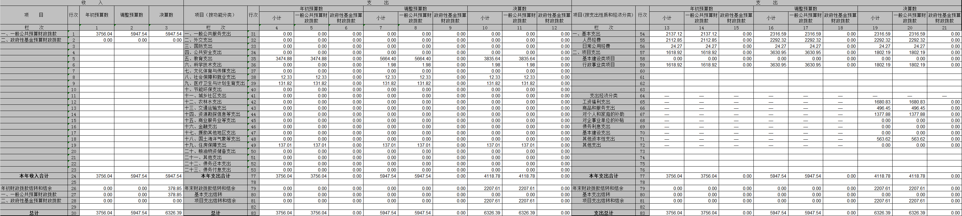 表一:收入支出决算总表