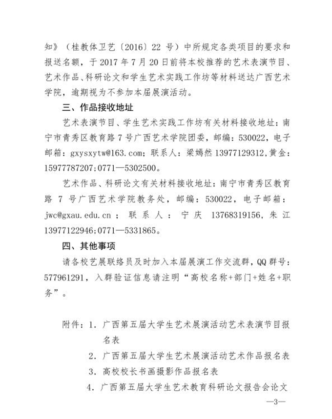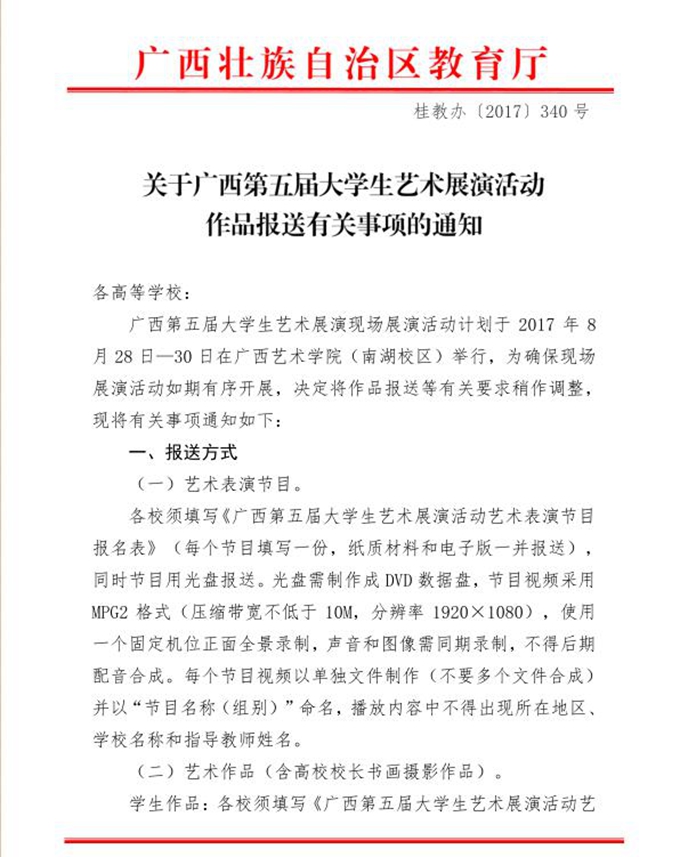 附件:桂教办〔2017〕340号 关于广西第五届大学生艺术展演活动作品报送有关事项的通知
