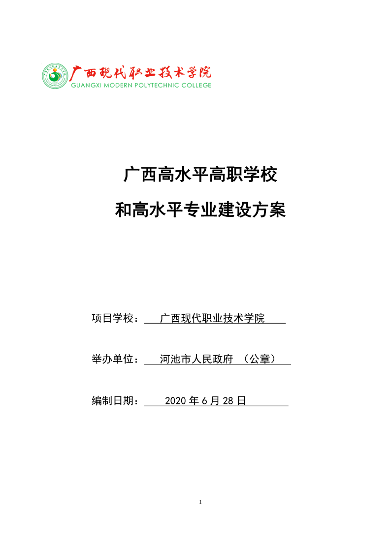 广西现代职院--广西高水平高职学校和高水平专业建设方案