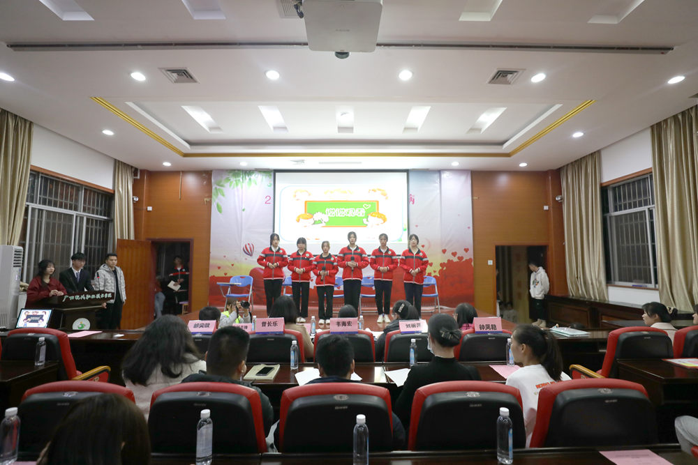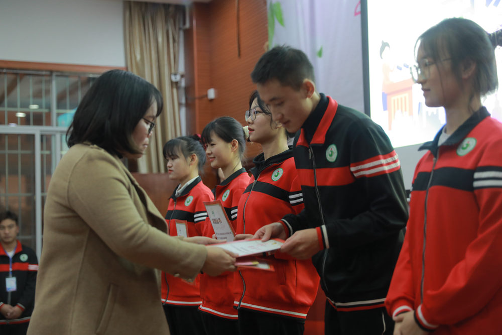 刘志峰主任、韦海宏书记为谭勇进、王日华、邰尖敏、钟凤艳、廖将勇、黄海谋等优秀指导老师颁奖。