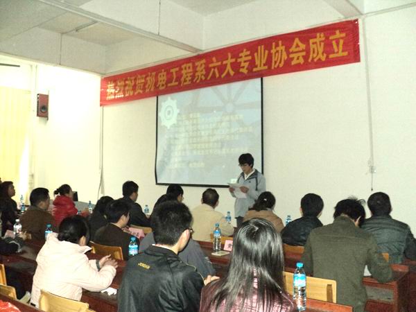 成立大会上,韦建军老师就成立六大专业协会的目的和要求进行了讲话。他说,成立六大专业协会的目的是为了激发同学们的学习兴趣,提高学习能力,动手能力,培养创新意识,促进团结协作精神,做到兴趣与专业相结合,学习与创新结合,在学习和实践中加深对专业知识的了解,弥补自己的不足,在学习中提高自己,在实践和创新中完善自我。学院团委副书记李媛媛老师、系副主任张坤领老师也发表了讲话。为保证各专业协会活动能正常有序的开展,本次成立大会还为各协会配备了指导老师。