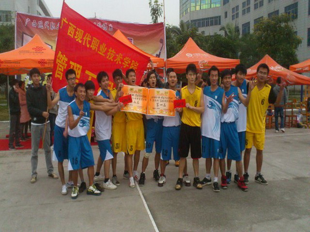 30日下午学院篮球场洋溢着一片喜庆气氛,分外热闹。对战双方分别是男子组10财务(2)、12财务(3)班联队与10市场营销班。10财务(2)班、12财务(3)班联队凭着他们精湛的技术以及默契的配合,以69:54的比分战胜10市场营销班摘下桂冠,10市场营销班获得亚军。