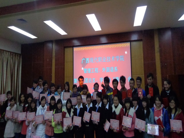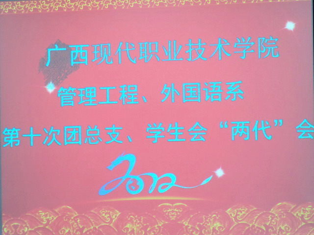 管理系、外语系讯(钟剡) 2012年12月25日晚,管理工程系、外国语系第十次团总支、学生会代表大会在学院第一学术报告厅隆重举行。院团委副书记黄仕珍,系党总支副书记黄耀,副主任卢森焕、韦荣领、覃素香,团总支负责人卢绍迎老师,青年教师吕璇、韦新梅、冯小兰出席本次大会。院团委学生会、计算机工程系学生会、电子电力工程系学生会、资源工程系学生会、机电工程系学生会代表列席了大会。