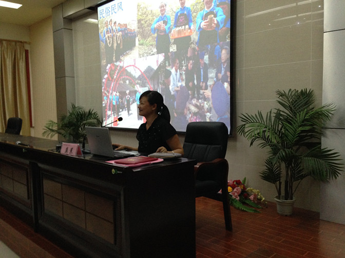本次讲座由樊文华老师主持,主要是以演讲以及互动的形式开展的。首先由李铃书记对莫茉老师颁发任职聘书,聘用莫茉老师到我校指导任教。莫茉老师在讲座中对蓝衣壮的介绍进行了重点讲解,蓝衣壮位于河池市天峨县三堡乡,那里的桐花漫山遍野,灿烂美丽,那里的人民淳朴善良,热情好客,还详细讲解了蓝衣壮的婚姻习俗、糍粑彩绘、节日、服饰、风景的知识。