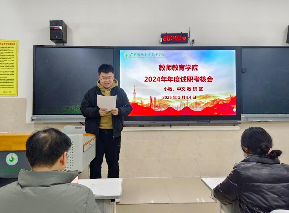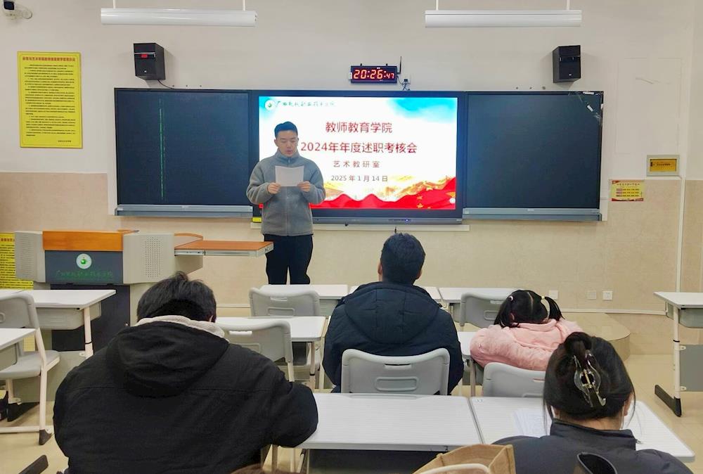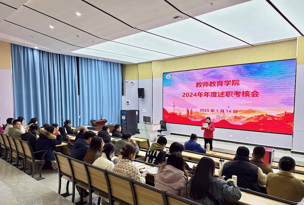 为全面掌握和评价教职工2024年履职情况,加强队伍建设,2025年1月14日晚上20:00,教师教育学院在综合楼B201会议室召开了2024年年度述职考核会。学院领导班子、全体教职工参加了此次会议。学校副校长黄耀出席会议并讲话。