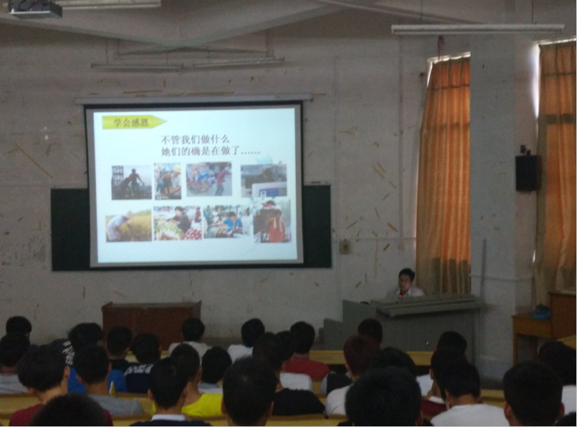李和明副书记以“感恩”、“珍惜”为主题,通过视频、事例为同学们讲解如何做人、如何做事的道理,并以“龟兔赛跑”的故事激励同学们发扬团队精神,铸造共赢。同时,李书记希冀通过参加本次培训的学生干部以自身行动带动集体,活跃集体。