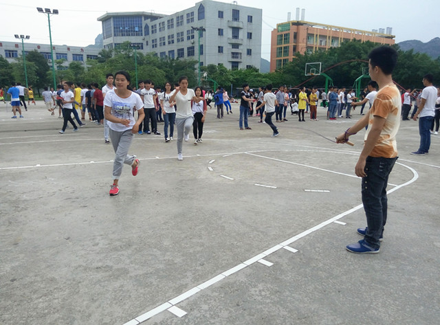 (电子系讯)为了不断提高学生体质健康水平,丰富校园生活,活跃课间气疯,提高学生身心素养,4月28日下午放学后再学校篮球场举行了班级三分钟团体跳绳的比赛形式。