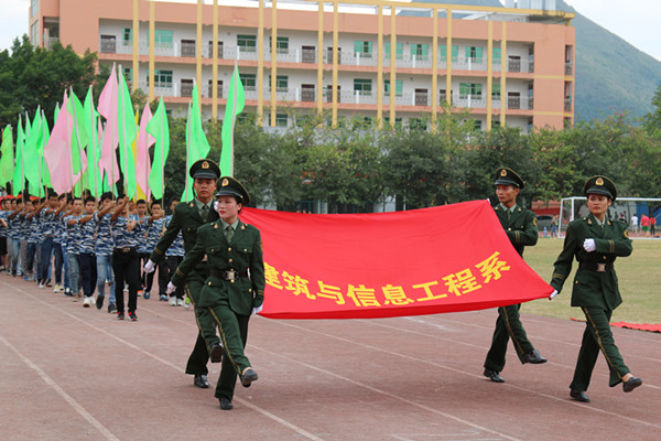 建筑与信息工程系讯 2016年10月18日下午,我系在学院足球场隆重举行第十六届“迎新杯”篮球赛开幕式。出席本次活动的领导嘉宾有:院长助理、建筑与信息工程系党总支书记、主任覃孜、学工处处长李铃,学院团委副书记李秀华、系党总支副书记韦红娜、系副主任莫文水、系副主任朱金海、系团总支书记周凤秀。