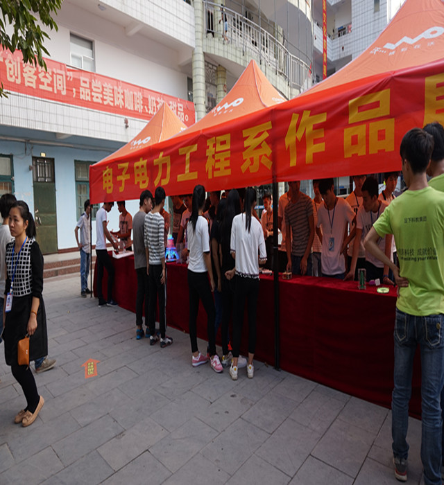 (电子系讯)为了丰富同学们的课余生活,培养大家对科学技术的兴趣。于2016年11月21日,我院的校园文化艺术节作品展在喷泉广场如期举行,所有作品展均为我系同学所创,构思新颖、独出心裁。受到了领导、老师以及同学们的欢迎。
