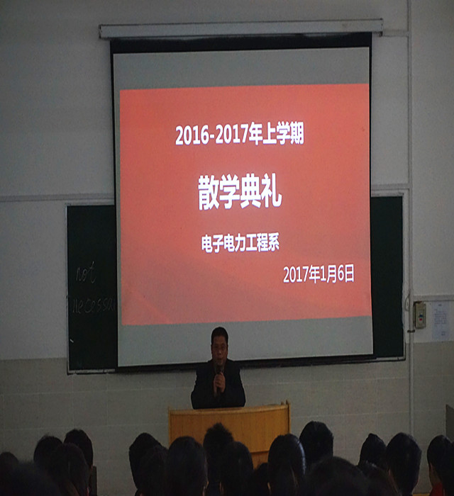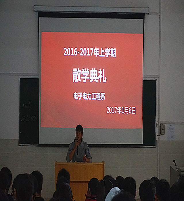 (电子系讯)每当临近寒假,都是同学们最激动,最期待的时刻,而老师们却是很忙碌的。2017年1月6日上午,电子电力工程系在第一教学楼第一阶梯教室召开了2016——2017学年上学期的散学典礼。