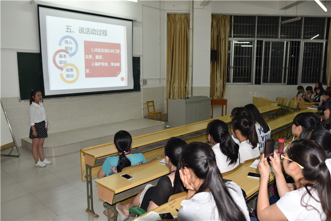韦佳、罗德英两位学生党员为大家讲授的示范公开课教学目的明确、教学重点突出、教态大方,展现了一个未来的幼儿园教师职业素养的根本要求。两位学生党员于2016年5月22日—23日,代表我系参加了全区师范生技能大赛。