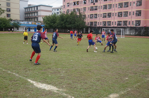 首先,在本次足球赛中,参赛球员以高昂的斗志完美的演绎了足球的无穷魅力与无边激情。在这次比赛中,双方球员以精湛地脚法、完美地盘带、巧妙地过人技术为同学们呈现了一场精彩的足球赛。于此同时,在此次足球赛中也涌现出了很多的足球健儿,他们的存在为球赛升温不少,使得球赛异常的精彩。