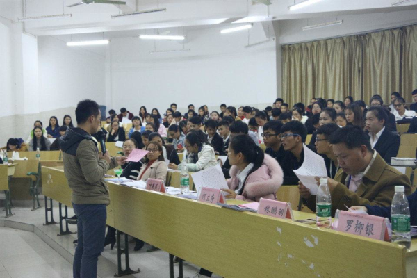 【经济管理系讯】11月30日晚上7:45分,2017年经管系首届“强技杯”知识竞赛在学院第一教学楼第四阶梯教室开赛。来自于经管系个班级的19支参赛队伍参加比赛。
