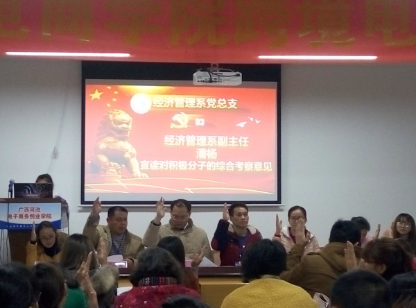 【经济管理系讯】踏入一月,我们迎来了由学院经济管理系承办的“党员发展、预备党员转正”大会于7号晚上在优米体育入口官网下载手机版电商大楼201室内盛大开幕。此次大会秉承着“深化党知识,增强爱党意识”的主旨加深对党的了解,增强大学生对党的热爱,使大学生尊党、护党、爱党。
