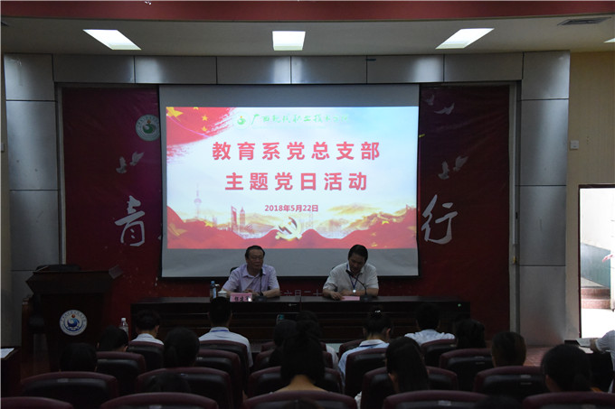 为强化党员的党性观念和宗旨意识,激励党员树立崇高理想和坚定信念,激发党员同志、入党积极分子干事创业、创先争优的热情,5月22日下午,教育系党总支部在学院第一学术报告厅开展了“青春与信仰同行”主题党日活动,邀请了银建军教授做专题讲座。教育系全体党员及150余名入党积极分子参加,黄绍光院长出席讲座,教育系党总支书记覃琳琳主持专题讲座。