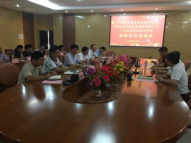 7月2日下午,我院与广州微粤信息科技有限公司、深圳市头狼电子商务有限公司在图书馆会议室开展校企合作交流会。学院党委书记韦伟松,学院副院长韦胜东,学院院长助理、经济管理系主任、电商学院院长杨奎,职业教育中心学校校长助理、财经教学主任黄新毅、经济管理系党总支书记卢绍迎、广州微粤信息科技有限公司董事长徐振标、广州微粤信息科技有限公司总经理陈江生、深圳市头狼电子商务有限公司黄兴朋等出席本次洽谈会等相关负责同志及专业教师参加交流会。会议由学院院长助理、经济管理系主任、电商学院院长杨奎主持。