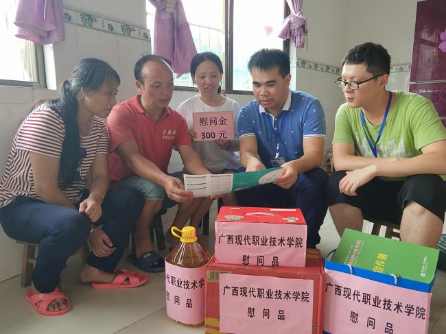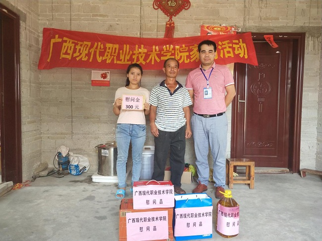 为深入贯彻落实国家有关深入开展资助育人和资助政策宣传工作的精神,了解我院家庭经济困难学生情况,把党和国家对家庭经济困难学生的关怀落实落细,我院在暑假期间开展了走访贫困生家庭的慰问活动。根据学院暑期走访家庭经济困难学生家庭活动的工作安排,8月6日-10日,经济管理系党总支书记卢绍迎、资助干事梁栋、班主任唐小荔等一行5人前往广西柳州市三江县独峒乡平流村、来宾市兴宾区三五乡古灯村、贵港市平南县思旺镇六桂村,走访慰问该系2017级3名贫困生家庭,给他们送去温暖。