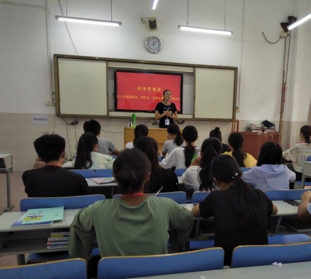 2018年9月4日,经济管理系团总支、学生会、自律委员会第一次全体大会在一教102召开。本次会议由我系团总支书记谭海丝主持。