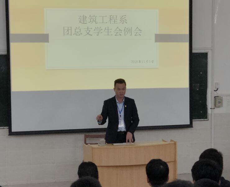 建筑工程系讯 学生会是当今学校的组织结构之一,是学校联系学生的桥梁和纽带,是不可缺少的组织机构,它提倡自我服务,自我管理,自我学习的学生组织,为学校学生和老师提供无偿服务的部门。为做好学生会队伍建设,更好地开展学生工作,2018年11月5日晚上21:10分我系在第一教学楼第一阶梯教师召开建筑工程系团总支学生会9、10月工作例会。出席本次例会的领导有我系党总支副书记罗皓、团总支书记周凤秀以及全体学生会成员及候补委员。