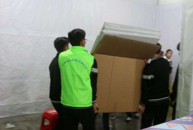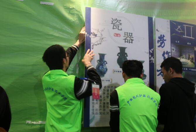 气的转变,帮忙搬运道具,展区布展,高处装订等,牺牲自身课余时间东奔西走,忙