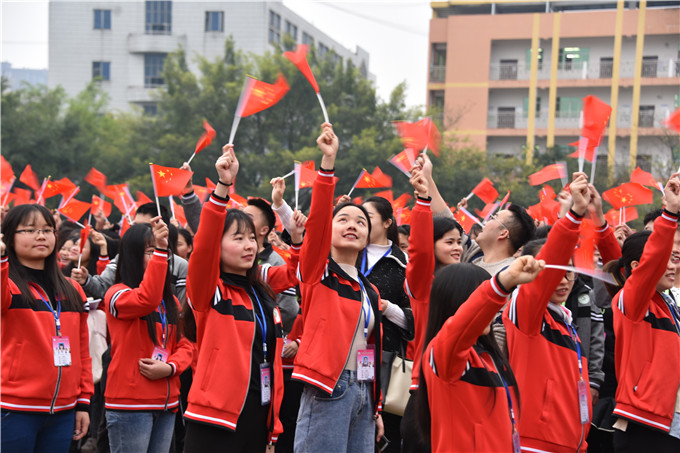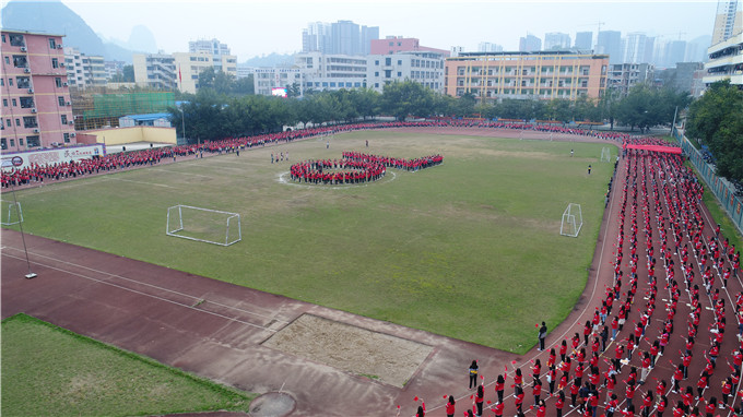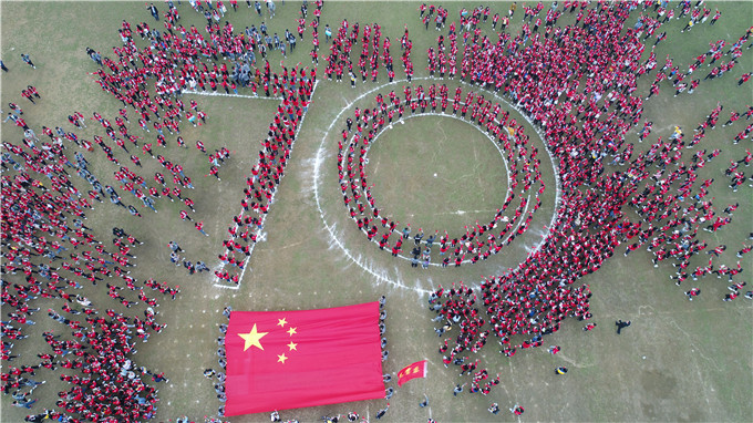 “我和我的祖国,一刻也不能分割……”,2019年3月13日,教育系创新晨读形式,在学院田径场开展唱响《我和我的祖国》爱国主义教育暨主题党日活动。学院副院长韦胜东出席并参加活动。 2600余名师生挥舞着手中的国旗,在4名教师党员带领下饱含深情齐唱《我和我的祖国》,优美激昂的旋律在校园回荡,用最美的歌声向祖国70岁华诞献礼。250名学生在田径场中间摆出“70”字样,20名旗手高举8*10米的巨幅五星红旗,绕田径场慢跑。 最后,全体师生走向田径场中间 “70”字样,齐声高喊“中国,我爱你”,用最真挚的感情表达浓浓的爱国之情和对祖国的礼赞。 开学之初,教育系以特殊的方式开展爱国主义教育暨主题党日活动,贯彻“育人为本,德育为先”的理念,用社会主义核心价值观引领学生“扣好人生第一粒扣子”,符合新时期党建工作和三全育人工作的要求,充分发挥了党员先锋模范性及活动育人的功能,在推动以党建为载体,推进“三全育人”工作,提升基层党组织组织力等方面具有重要意义。