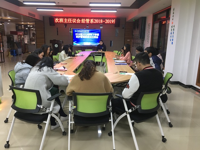 经济管理系召开第三次班主任会议 2019年3月19日晚上18:30,经济管理系在青年之家举行本学期第三次班主任会议。本次会议由我系卢绍迎书记主持,主要从三个方面展开。 第一,卢书记就上一周各班表现好的方面进行表扬,希望各班继续保持,做好相关工作。 第二,卢书记强调上一周表现不足的部分,主要从卫生、安全、学生心理健康等展开。 最后,强调各位班主任要贯彻落实班级同学对于青年大学习的学习情况。