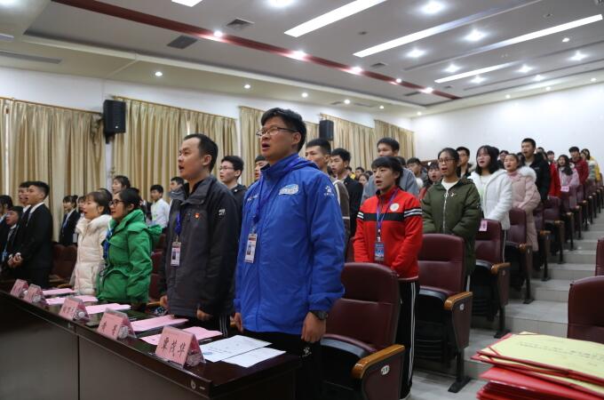 报告厅隆重召开了建筑工程系第十五届团总支学生会换届大会。