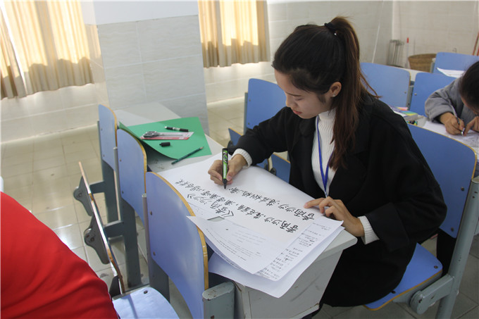 为丰富校园文化生活,提升我系学生的综合素养,进一步增强师范生实践应用能力和创新能力,彰显师范特色,强化学生教学技能,我系于11月29日举行了学院学生技能比赛,比赛项目分为师范生技能大赛和三笔字比赛。覃始洋、蒙家辉、温远涛三位老师担任书法三笔赛评委,李杰平、覃湘荔、王美实、陈烨、卢谊佩老师担任师范技能大赛评委。 132名2018级小学教育专业的学生参加了三笔字(毛笔、钢笔、粉笔)比赛,学生作品或苍劲有力,或隽永飘逸,或清秀雅致,充分彰显了我系学生深厚精湛的书法技艺。55名2017级学前教育学生参加了师范生技能大赛,赛场分为A、B、C场。 本次活动的开展,不仅为同学们提供了一个展示技能的舞台,而且为我系选拔优秀的学生参加河池市、广西区比赛做好了储备,有力促进了我系发掘和储备人才。
