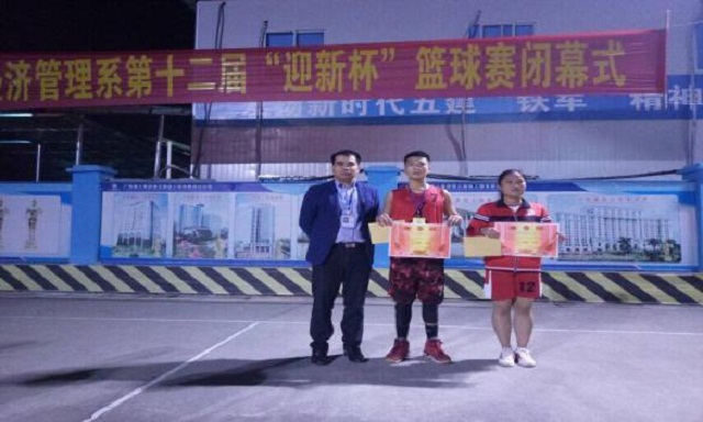 热烈祝贺经济管理系第十二届“迎新杯”蓝球联赛圆满成功 经过将一个多月的激烈逐角,在2018年11月27号晚在我院灯光蓝球场隆重举行经济管理系第十二届“迎接杯”蓝球赛闭幕式。我系党总支书记卢绍迎、团总总支书记谭海丝以及经管系全体师生出席了闭幕式。 闭幕式开始,首先由我系党总支书记卢绍迎致闭幕词,对本届篮球赛全体工作人员表示感谢以及在比赛中取得优异成绩的班级表示祝贺。其次由我系团总支学生会自律会体育部部长宣布获奖班级,获奖班级派代表上来领奖,由我系卢绍迎书记为他们颁奖。最后,我系党总支书记卢绍迎宣布第十二届“迎新杯”篮球赛闭幕。 本届篮球比赛丰富了校园生活,提高了学生身体素质,培养了同学之间的感情、团队合作精神、集体荣誉感,共同打造了一个班级凝聚力、班级向心力强的先进班级,展示了我系学生团结、和谐、勇于拼搏的精神风貌。
