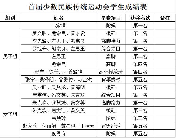 在第十四届田径暨首届少数民族传统体育运动会上取得团体总分双项第二名的佳绩,