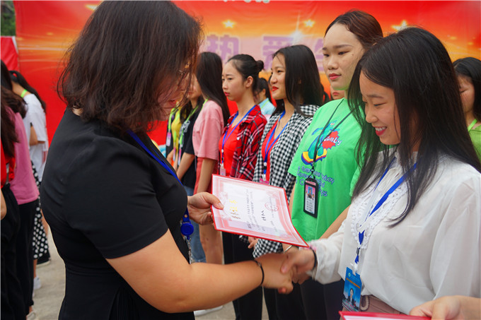此次表彰大会,对教育系2018-2019学年民族文化进校园工作进行了总结及表彰,重点表彰了在蚂拐歌、蚂舞、铜鼓、铜咚、扁担舞、丰收舞、皮鼓舞项目中涌现出来的先进指导老师、学生代表及班级。授予17学前5班等13个班级“优秀班级”荣誉称号,罗婷等23名教师“优秀指导老师”荣誉称号,劳钦钦等214名学生“优秀个人”荣誉称号。