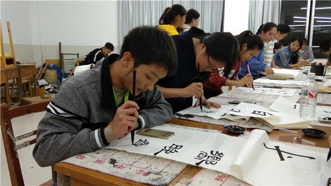 比赛时长共两小时,具体时间分配由选手自定,选手们坐姿端正,认真书写,凝神静气,现场井然有序。他们的作品有的娟秀婉约,有的大气舒展,有的端正整齐,充分展现出我系学生扎实的专业技能。
