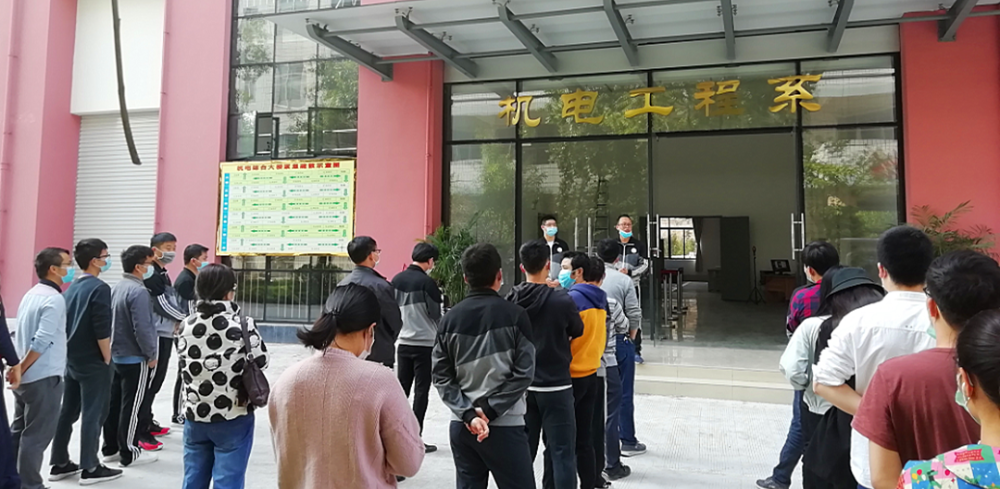 机电工程系党总支副书记、系主任岑华教授要求每位教师思想上千万不能松懈,一定要严格按照学院疫情防控工作部署开展各项工作,及时学习有关疫情防控工作的文件精神,提高认识。并对全体教职工的工作任务做了具体安排,要求全体教师要保质保量完成工作,并且要求系办公室做好卫生检查工作。